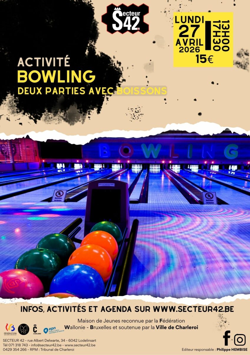 🖊️Bowling au Secteur 42 ! 📅Le lundi 27 avril 2026 –
