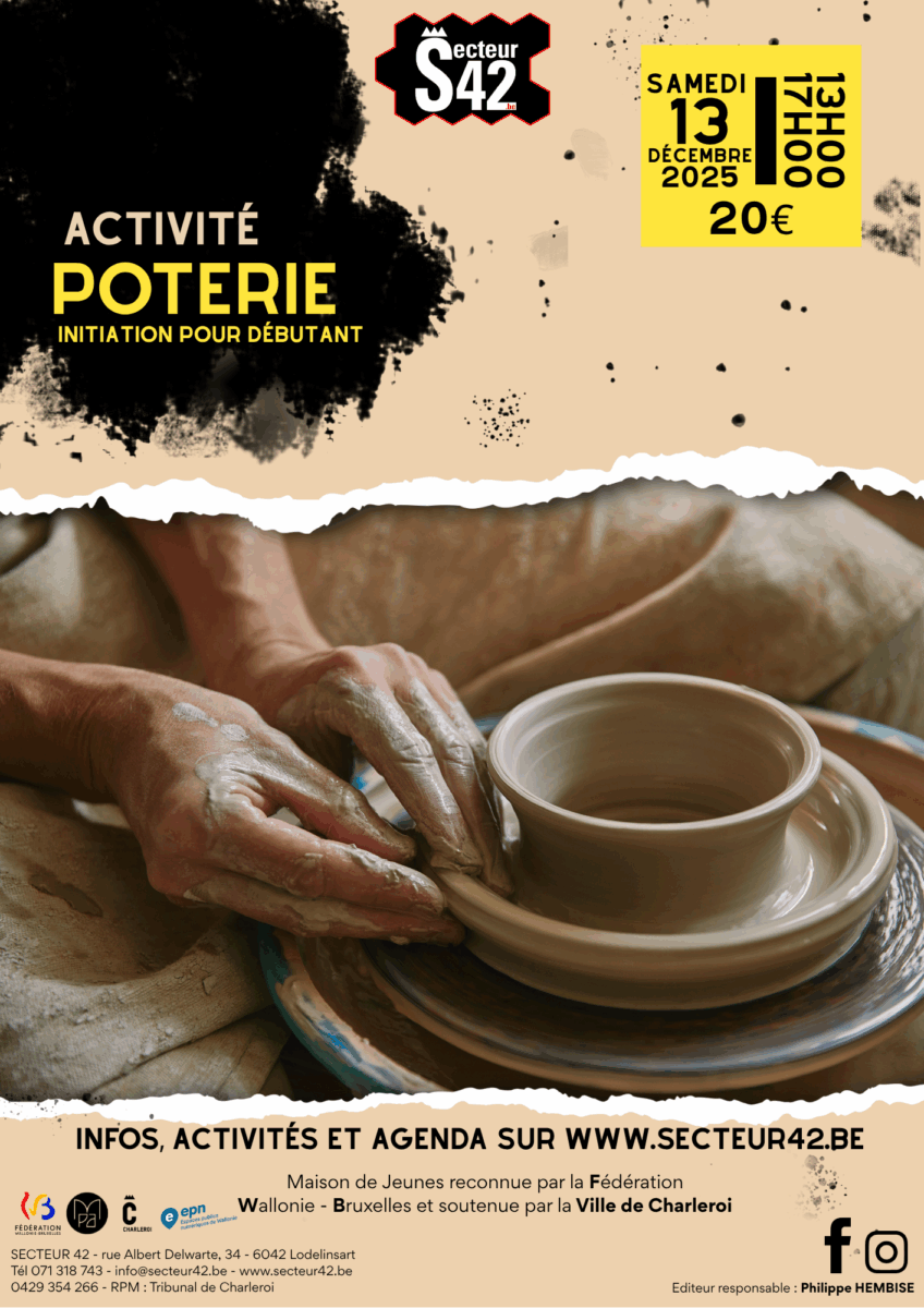 🖊️ Initiation à la poterie au Secteur 42 ! 📅 Samedi