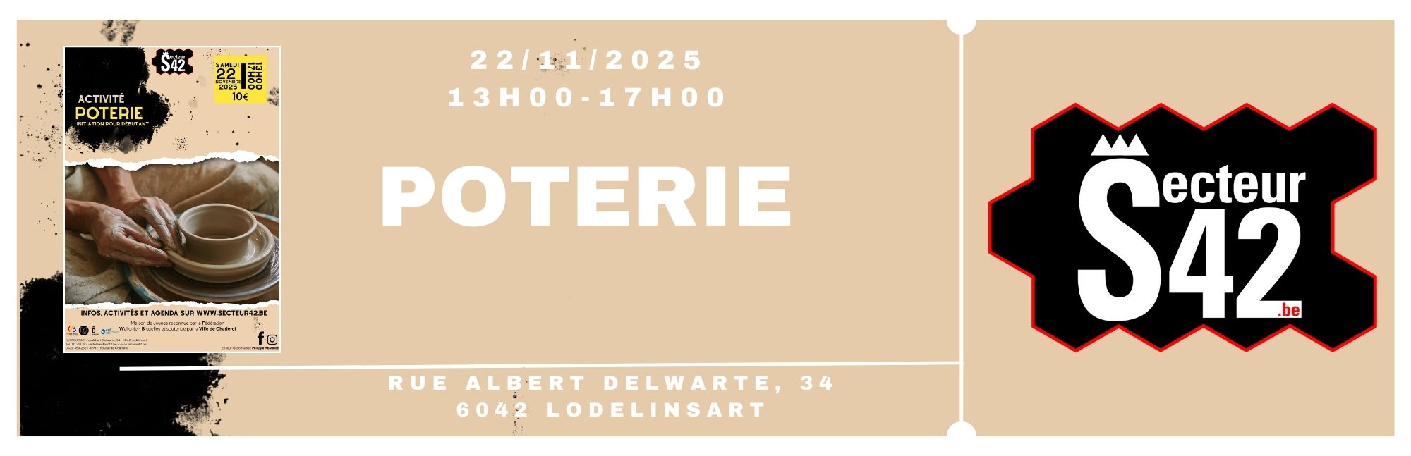 🖊️ Initiation à la poterie au Secteur 42 ! 📅 Samedi