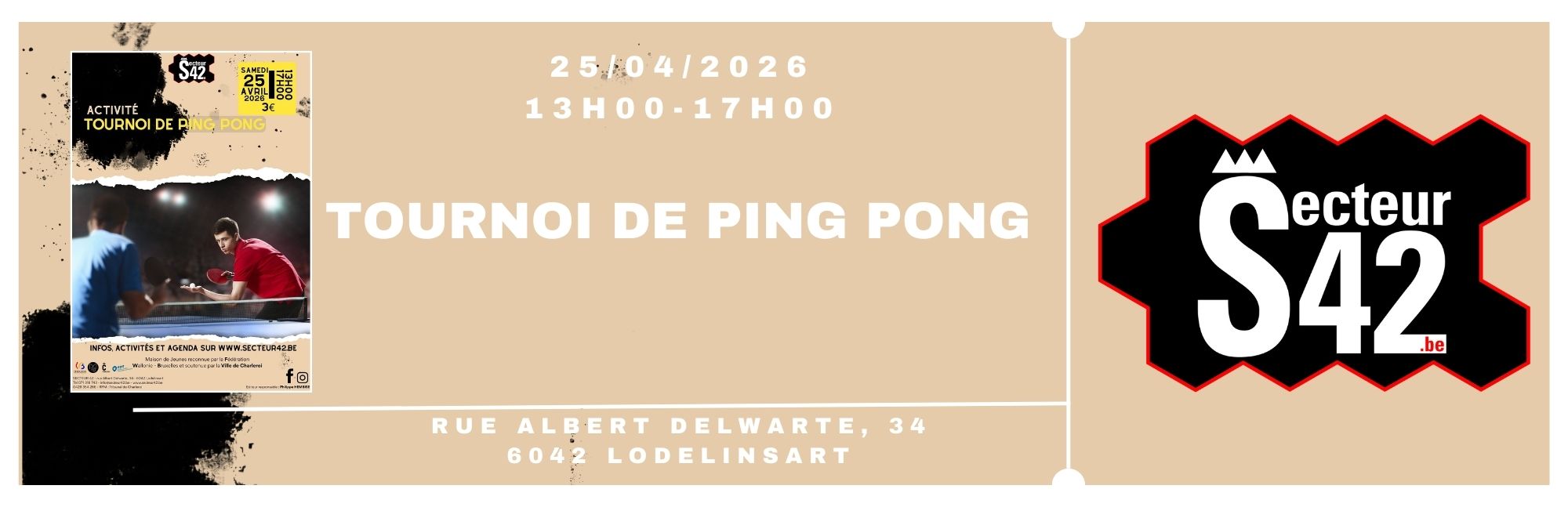🖊️Tournoi de Ping Pong au Secteur 42 ! 📅Le samedi 25